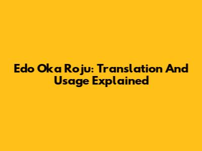 Edo Oka Roju: Translation And Usage Explained