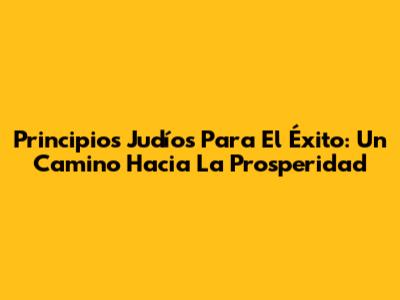 Principios Judíos Para El Éxito: Un Camino Hacia La Prosperidad