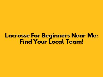 Lacrosse For Beginners Near Me: Find Your Local Team!