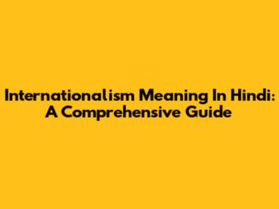 Internationalism Meaning In Hindi: A Comprehensive Guide