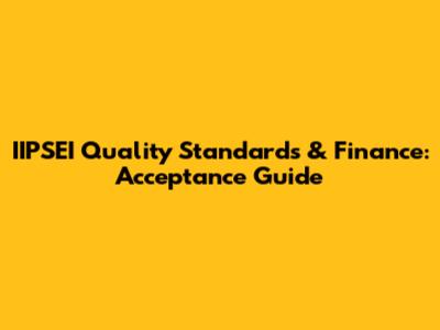 IIPSEI Quality Standards & Finance: Acceptance Guide