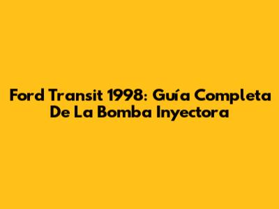Ford Transit 1998: Guía Completa De La Bomba Inyectora