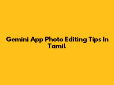 Gemini App Photo Editing Tips In Tamil
