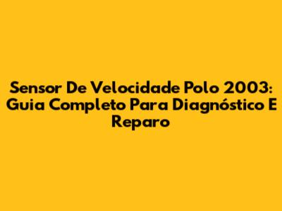 Sensor De Velocidade Polo 2003: Guia Completo Para Diagnóstico E Reparo