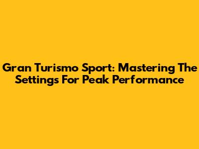 Gran Turismo Sport: Mastering The Settings For Peak Performance