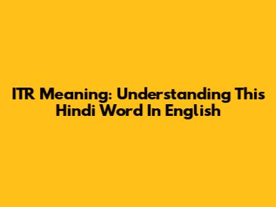 ITR Meaning: Understanding This Hindi Word In English