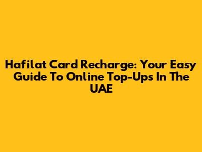 Hafilat Card Recharge: Your Easy Guide To Online Top-Ups In The UAE