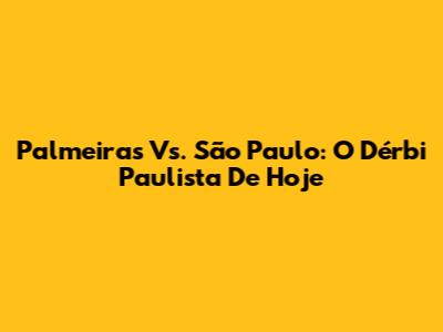 Palmeiras Vs. São Paulo: O Dérbi Paulista De Hoje