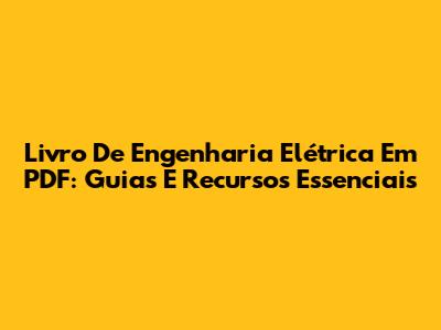 Livro De Engenharia Elétrica Em PDF: Guias E Recursos Essenciais