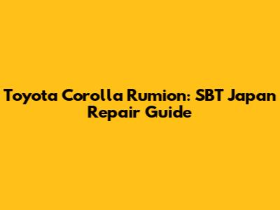 Toyota Corolla Rumion: SBT Japan Repair Guide