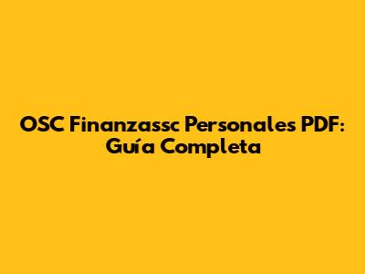 OSC Finanzassc Personales PDF: Guía Completa