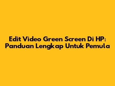 Edit Video Green Screen Di HP: Panduan Lengkap Untuk Pemula