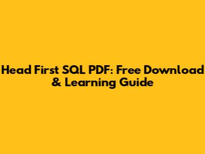 Head First SQL PDF: Free Download & Learning Guide