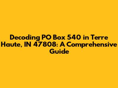 Hey guys! Ever wondered about PO Box 540 in Terre Haute, Indiana, 47808? Maybe you're curious about its location, how to use it, or maybe you just stumbled upon it and want to learn more. Well, you're in the right place! This guide is all about PO Box 540, Terre Haute, IN 47808, breaking down everything you need to know. We'll explore its significance, the benefits of using a PO box, and other interesting details. Get ready to dive in! We'll cover everything from the basic info, to the different reasons why someone might use this particular PO box in Terre Haute. This isn't just about the address, it's about the services it provides and how it fits into the community. So, let's get started and unravel the mystery together! I promise, by the end of this, you will know everything there is to know about this PO box.